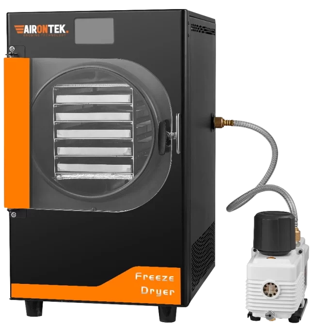 Freeze DryerMedium 4Kg | Large 6Kg SPECIFICHE TECNICHE COMUNI Tensione: 220-240 V / 50-60 Hz (disponibile anche 110 V / 60 Hz) Pressione minima: 15 Pa Temperatura minima trappola fredda: -45 °C Rumore: 60 dB Vassoi e struttura interna in acciaio inox SS304 Finestra trasparente di osservazione del processo Elevata efficienza di disidratazione e risparmio…